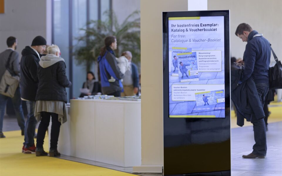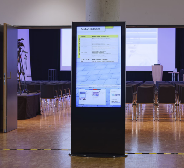 Die Multitouch-Display Stelensysteme sind der moderne und elegante Blickfang für Präsentationen an verschiedensten Einsatzorten: Fachmesse, Kongress, Tagung, Bildungseinrichtung, Hotel, Einkaufszentrum, Produktions- und Fertigungsstätte, Empfangshalle und andere stark frequentierte Flächen – mit ihrem schlanken und ansprechenden Design sind die digitalen Werbetafeln beeindruckende Hinweisdisplays im Hochformat und werten nicht nur optisch, sondern auch repräsentativ Ihre Veranstaltung auf.